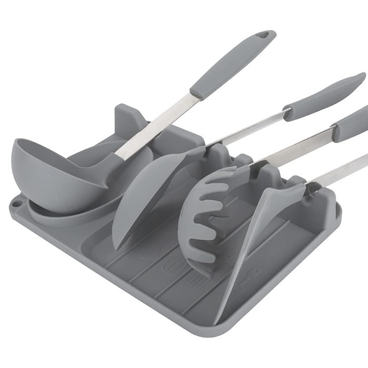 1. รักษาเคาน์เตอร์ของคุณให้สะอาดทุกครั้งที่คุณทำอาหาร - ที่วางช้อนสำหรับเคาน์เตอร์ครัวนี้ช่วยปกป้องเคาน์เตอร์ของคุณจากความยุ่งเหยิงในการทำอาหาร การออกแบบแผ่นรองน้ำหยดให้ใหญ่ขึ้นจะช่วยรองรับน้ำหยดทั้งหมด แม้จากช้อนส้อมขนาดใหญ่ของคุณ เหมาะเป็นที่วางช้อนสำหรับวางบนเตาหรือที่ใส่อุปกรณ์ทำบาร์บีคิว